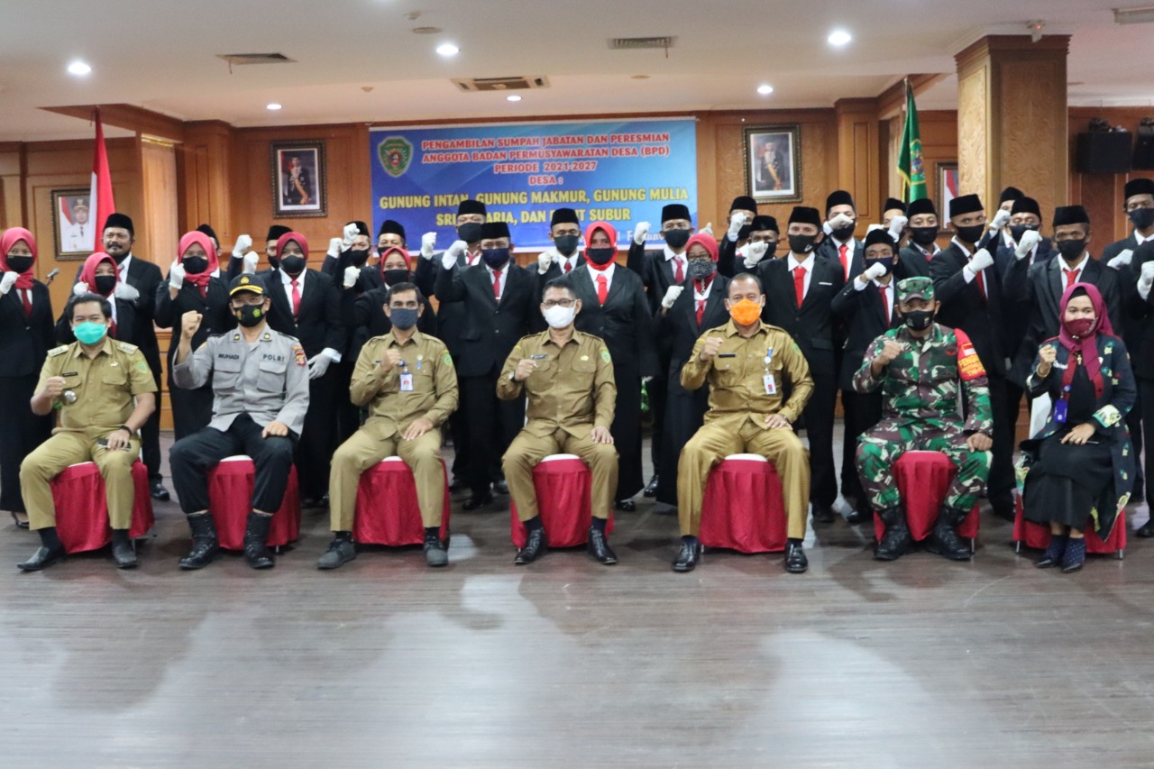 ENAJAM – Anggota Badan Pemusyawaratan Desa (BPD) periode Tahun 2021 – 2027 dari Desa Gunung Intan, Gunung Makmur, Gunung Mulia, Sri Raharja serta Desa Bukit Subur di Kabupaten Penajam Paser Utara (PPU) resmi diambil sumpah dan dilantik Plt. Sekretaris Daerah (Sekda) PPU Muliadi di Aula Lantai I Kantor Bupati, Senin (1/02/2021).
