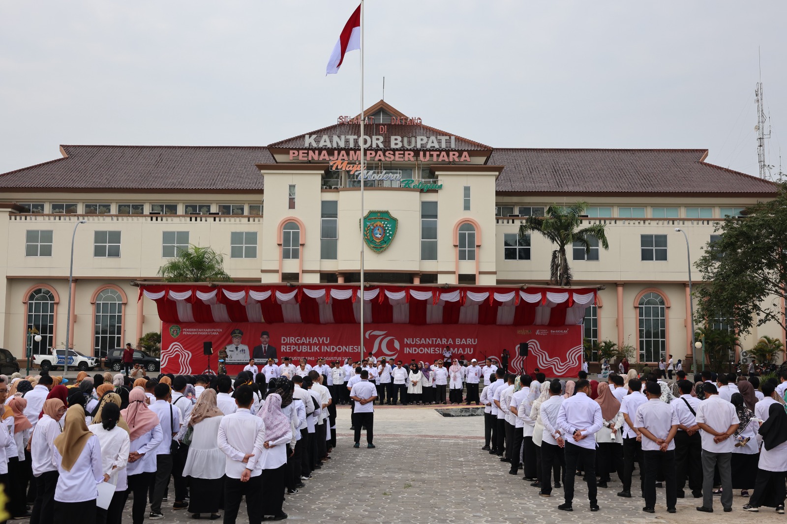 PENAJAM – Dalam suasana haru, Penjabat Bupati Penajam Paser Utara, Makmur Marbun, menyampaikan sambutan perpisahan pada apel gabungan seluruh pegawai di halaman Kantor Bupati, Rabu (18/9/2024). Selama satu tahun kepemimpinannya, Makmur Marbun telah berhasil membawa perubahan signifikan bagi Kabupaten PPU.