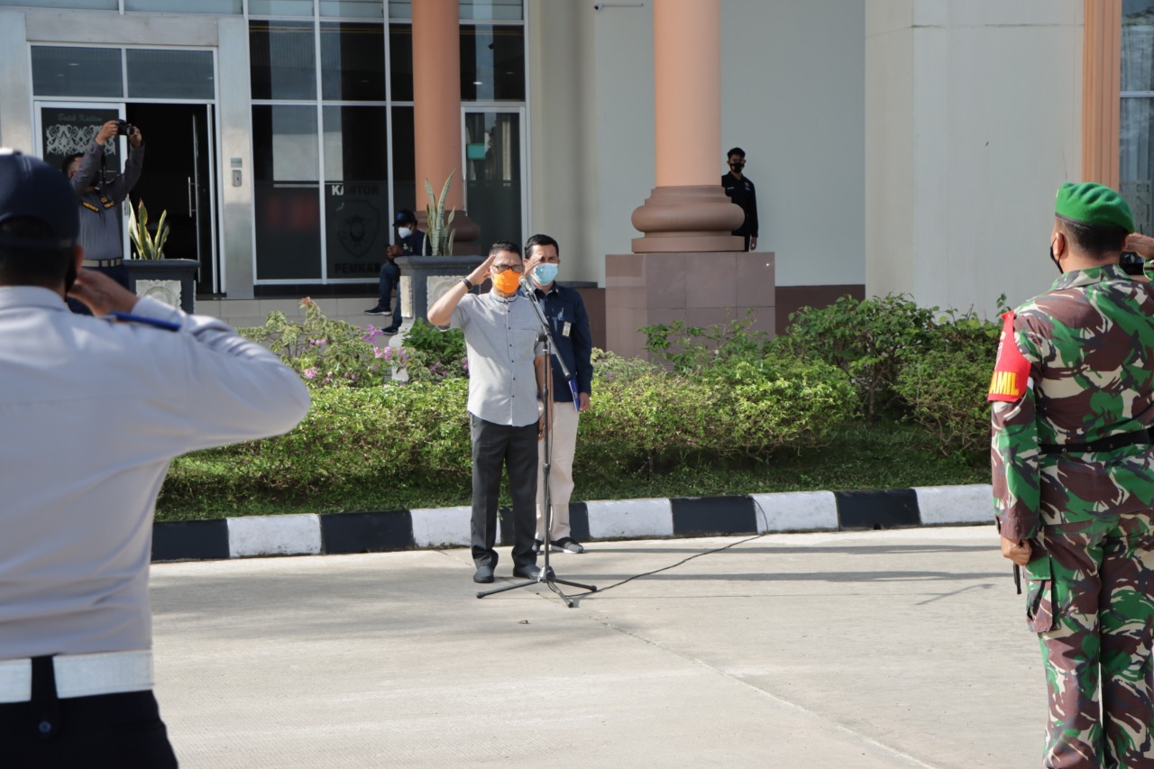 PENAJAM – Menindaklanjuti Intruksi Gubernur Kalimantan Timur (Kaltim) Nomor 1 Tahun 2021 terkait Pengendalian, Pencegahan dan Penanganan Wabah Corona Viruse Disease 2019 (Covid19), Sekretaris Daerah (Sekda) Kabupaten Penajam Paser Utara (PPU) Muliadi memimpin Apel Siaga Persiapan Kaltim Steril Covid19 di halaman Kantor Bupati PPU, Sabtu (6/2/2021).