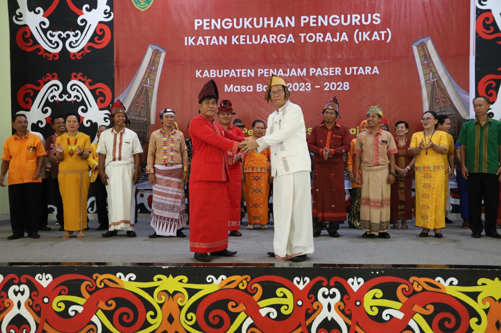 PENAJAM,- Asisten I Bidang Pemerintahan dan Kesra Sekretariat Daerah (Setda) Kabupaten Penajam Paser Utara (PPU) Sodikin, menghadiri pelantikan dan pengukuhan Pengurus Ikatan Keluarga Toraja (IKAT) Cabang PPU masa bakti 2023-2028 di Gedung Pertemuan RSUD Ratu Aji Putri Botung, Sabtu (21/10/2023).