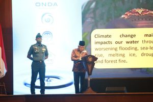 Dalam sambutannya, Wakil Presiden Ma’ruf Amin menyampaikan, “Perubahan iklim membawa dampak kekeringan, kebakaran hutan, mencairnya es di kutub, dan meningkatnya permukaan air laut. Oleh karena itu, pengelolaan air secara berkelanjutan harus diwujudkan.”