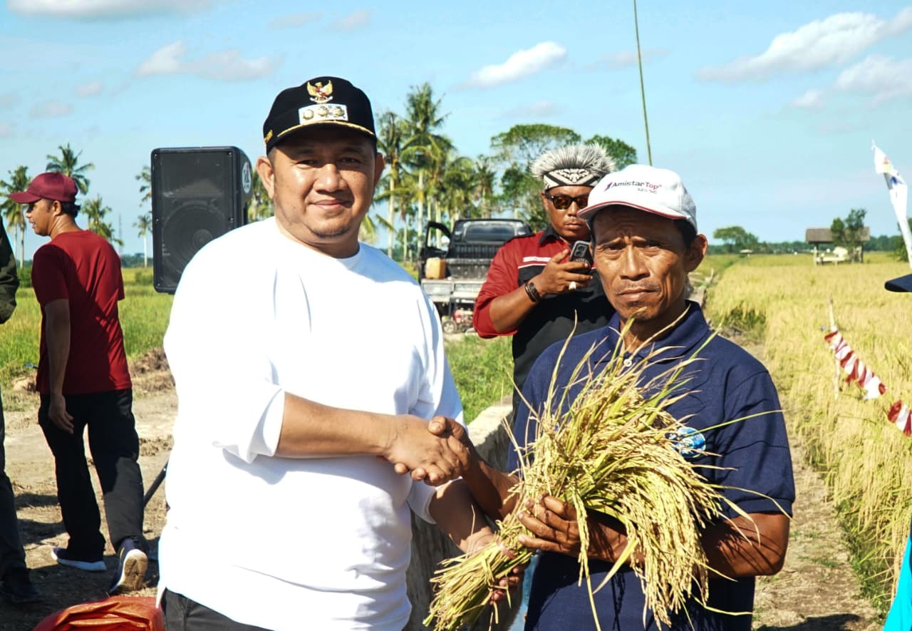 PENAJAM – Bupati Penajam Paser Utara (PPU) Mudyat Noor menghadiri acara syukuran panen padi yang digelar masyarakat petani di Desa Gunung Intan, Kecamatan Babulu, Senin (18/8/2025).