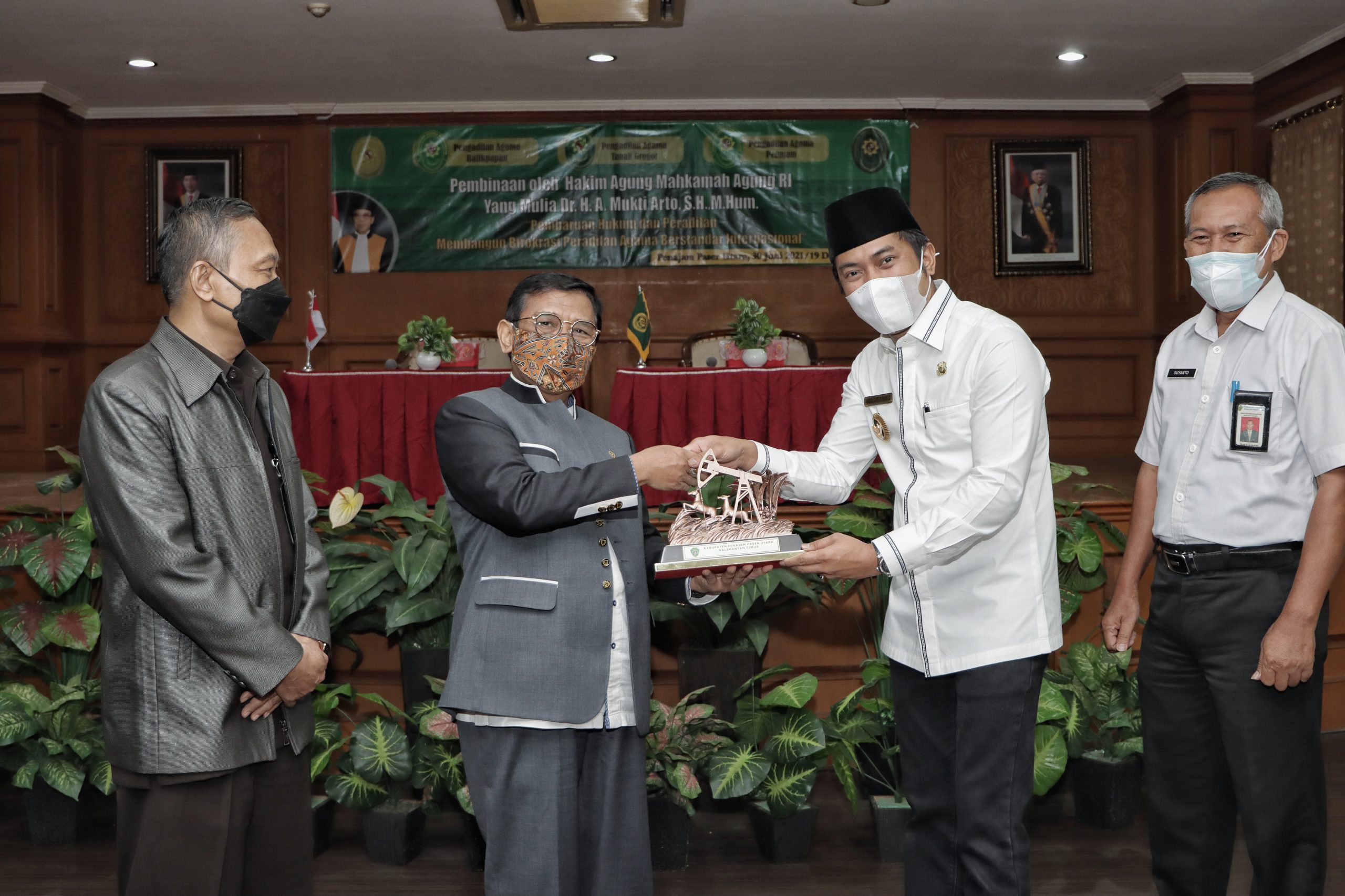 PENAJAM – Bupati Kabupaten Penajam Paser Utara (PPU) Abdul Gafur Mas’ud (AGM) menerima kunjungan Hakim Agung Republik Indonesia (RI) Dr. H.A. Mukti Arto, S.H., M.Hum., terkait pembinaan Pengadilan Agama Penajam yang digelar di Aula Lt.I Kantor Bupati PPU, Rabu (30/06/2021). Pembinaan tersebut mengusung tema Pembaruan Hukum dan Peradilan Membangun Birokrasi Peradilan Agama Berstandar Internasional.