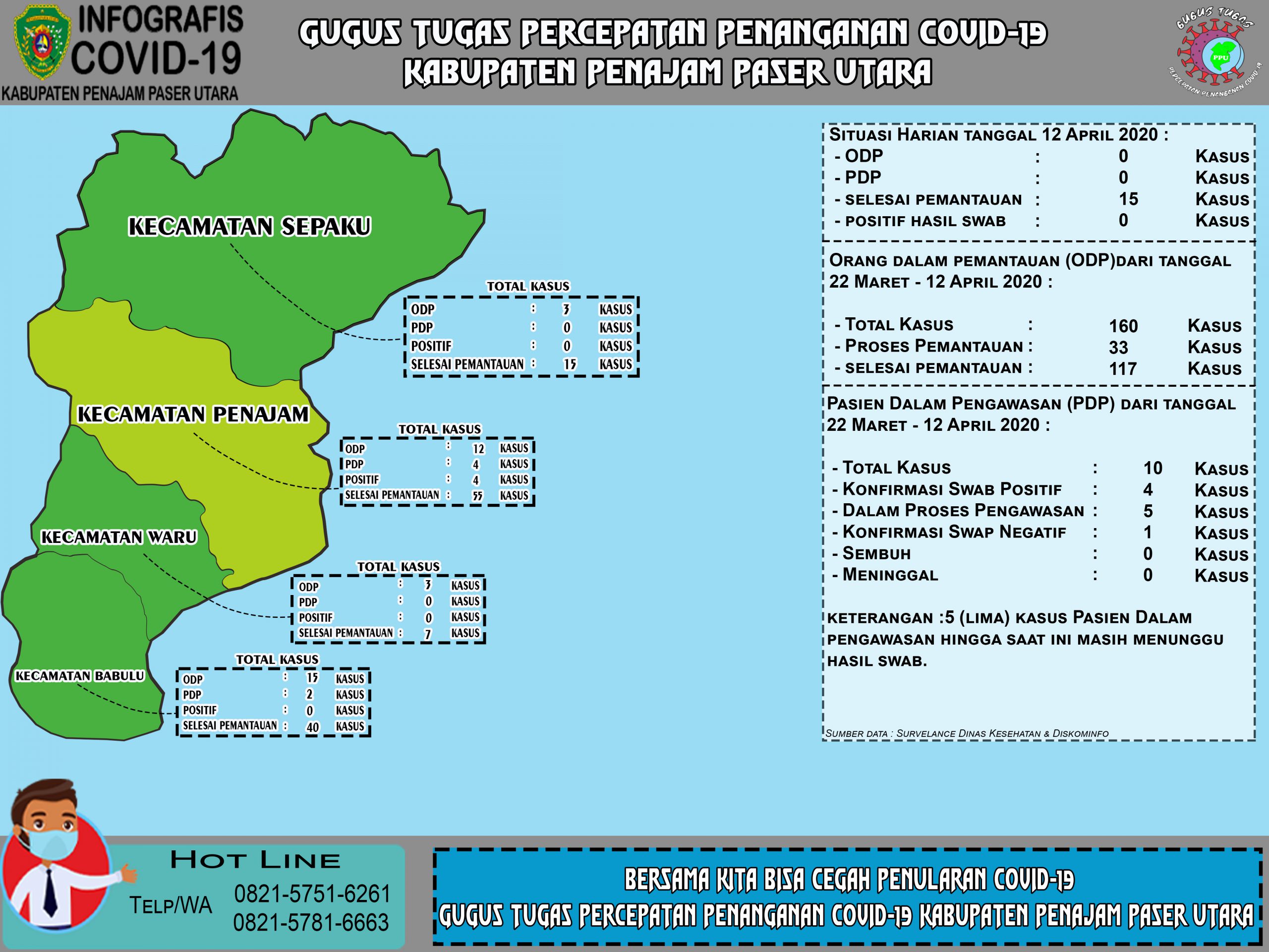 Pemerintah Kabupaten Penajam Paser Utara merilis perkembangan penanganan Corona Virus Disease (COVID-19) Wilayah Kabupaten Penajam Paser Utara per 12 April 2020.