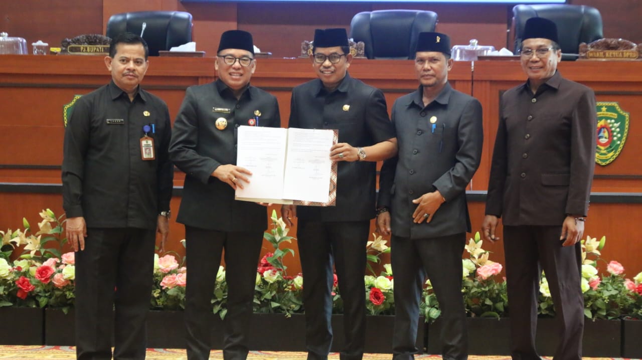 PENAJAM – Dewan Perwakilan Rakyat Daerah (DPRD) Kabupaten Penajam Paser Utara ( PPU) mengesahkan enam Rancangan Peraturan Daerah (Raperda) menjadi Peraturan Daerah (Perda) dalam rapat paripurna penyampaian laporan panitia khusus (Pansus) DPRD terhadap enam raperda Kabupaten PPU yang dilaksanakan di Gedung Paripurna DPRD PPU, Sabtu (23/12/2023).