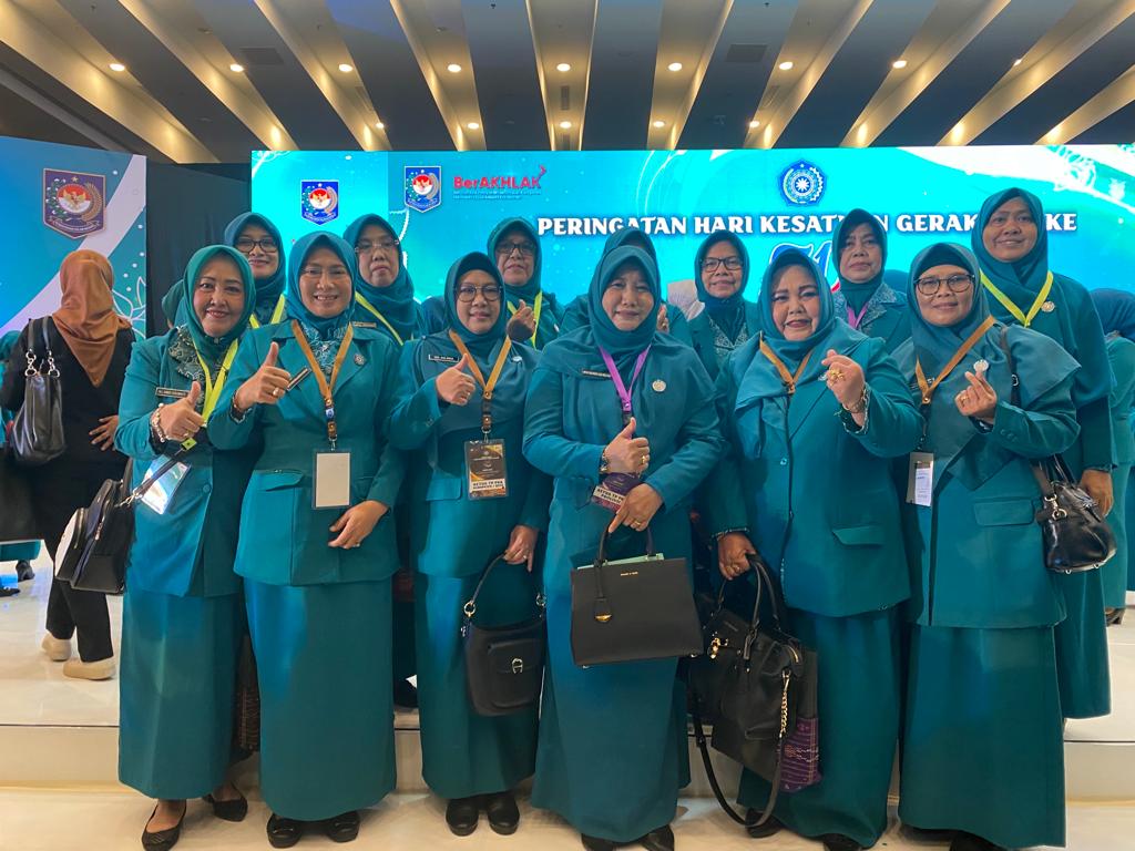 MEDAN- Ketua Tim Penggerak Kabupaten Penajam Paser Utara (PPU) Hj. Satriyani Sirajuddin Hamdam menghadiri Puncak Peringatan Hari Kesatuan Gerak (HKG) PKK ke-51 Tahun 2023 Tingkat Nasional, yang digelar di Ballroom Convention Hall Santika Premiere Dyandra Hotel, Kota Medan, Provinsi Sumatera Utara, Rabu (17/5/2023).