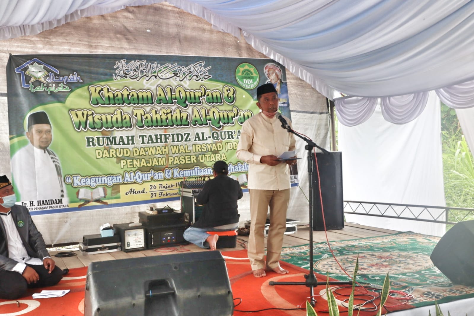 Saat sambutan Plt. Bupati PPU, Hamdam menyampaikan penghargaan yang setinggi-tingginya dan terima kasih yang sedalam-dalamnya kepada jajaran pengurus Rumah Tahfidz Al-quran DDI Kabupaten PPU, serta semua pihak yang telah memberikan kontribusi dan memiliki peran yang sangat fundamental terhadap masa depan dan kemajuan pendidikan anak-anak. Khususnya lagi di bidang pembinaan keagamaan untuk lebih mengenal dan mencintai Al-quran.