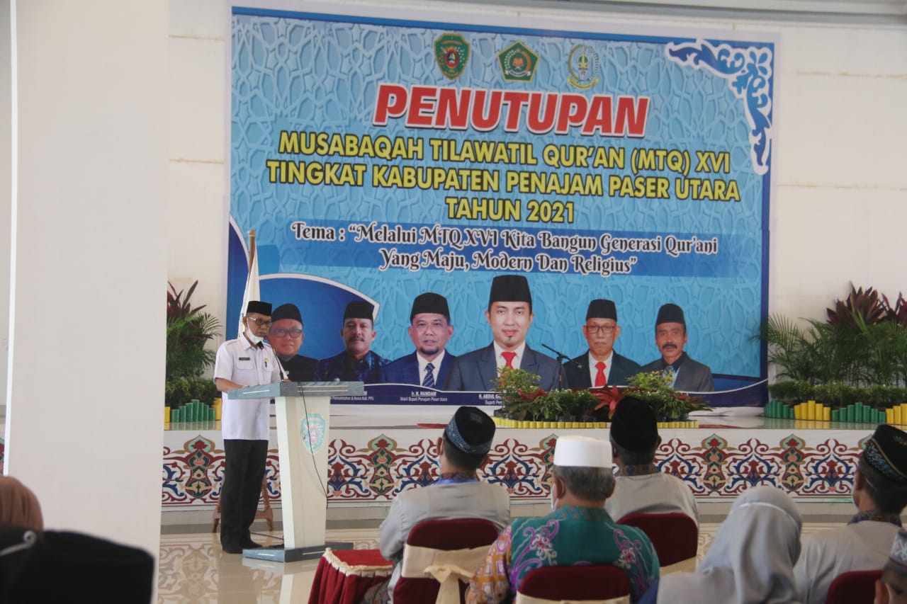 PENAJAM,- Musabaqah Tilawatil Qur’an (MTQ) ke-XIV Tahun 2021 tingkat Kabupaten Penajam Paser Utara (PPU) resmi ditutup oleh Plt. Sekretaris Daerah (Sekda) Kabupaten PPU Muliadi,di Masjid Agung Al-Ikhlas Kelurahan Nipah-nipah. Rabu (24/02/2021)