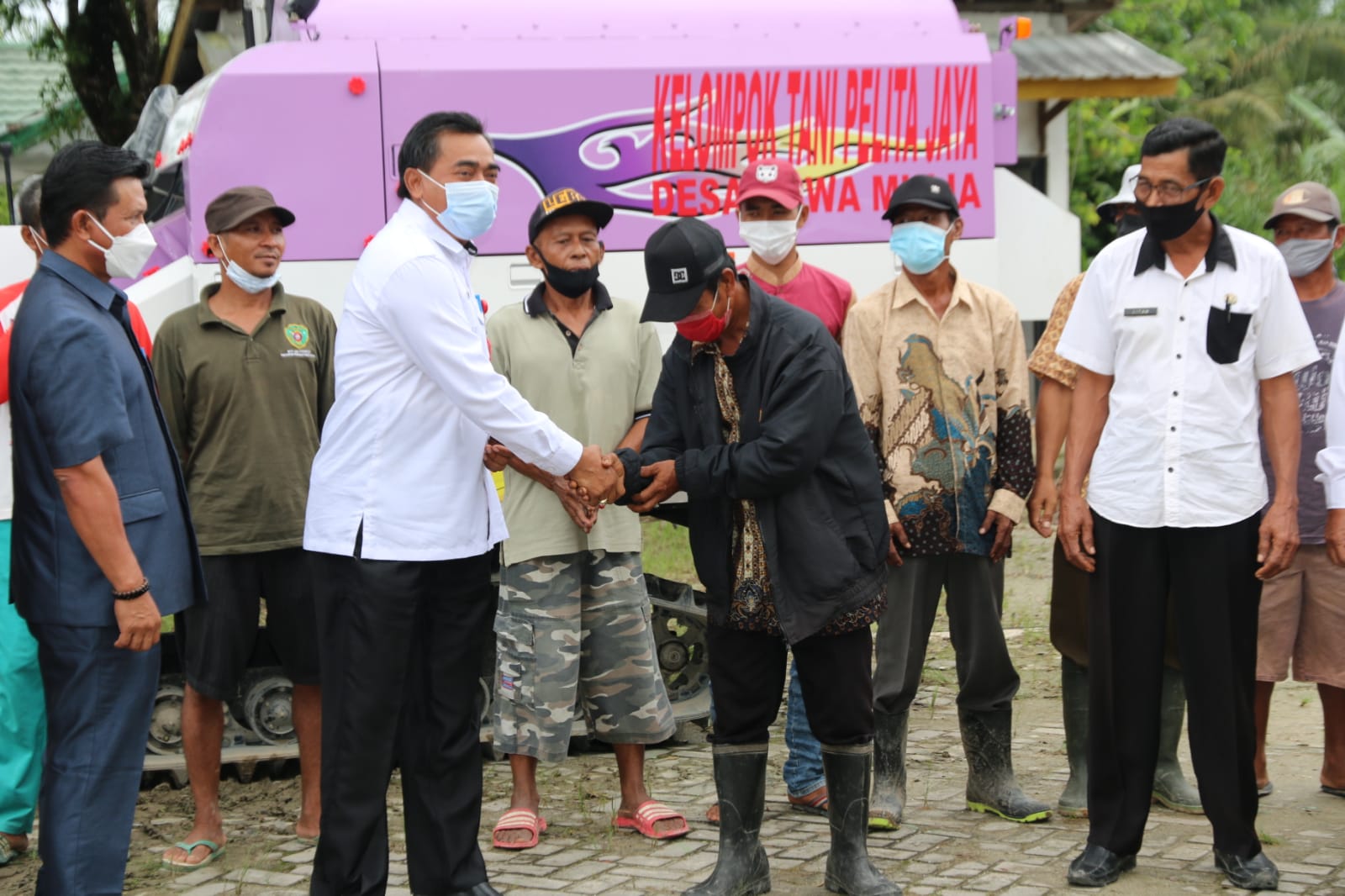 PENAJAM – Kepala Dinas Pertanian Kabupaten Penajam Paser Utara (PPU) Mulyono, mewakili Bupati PPU Abdul Gafur Mas’ud (AGM), saat menyerahkan bantuan berupa Alat Mesin Pertanian (Alsintan) kepada Kelompok Tani Pelita Jaya Desa Rawa Mulia. Penyerahan tersebut di gelar di Kantor Desa Rawa Mulia yang berada di Kecamatan Babulu, Rabu (25/08/2021).