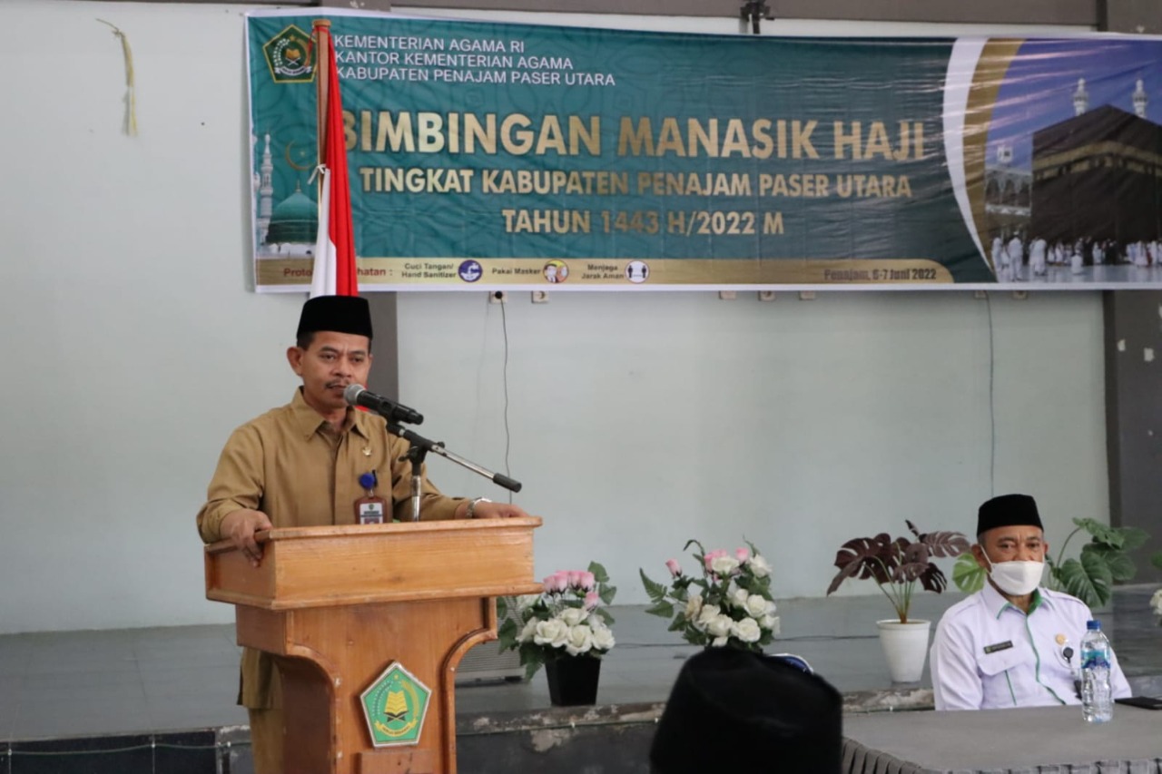 PENAJAM – Penjabat (Pj) Sekretaris Daerah (Sekda) Tohar membuka kegiatan bimbingan manasik haji tingkat Kabupaten Penajam Paser Utara (PPU) tahun 1443 H/2022 M di aula Kantor Kementerian Agama (Kemenag) Kabupaten PPU, Senin (6/6/2022). Bimbingan manasik haji di tingkat kabupaten ini merupakan pemantapan setelah sebelumnya dilaksanakan kegiatan manasik di tingkat kecamatan. Kabupaten PPU berencana memberangkatkan 58 calon jamaah haji pada keberangkatan haji gelombang kedua.