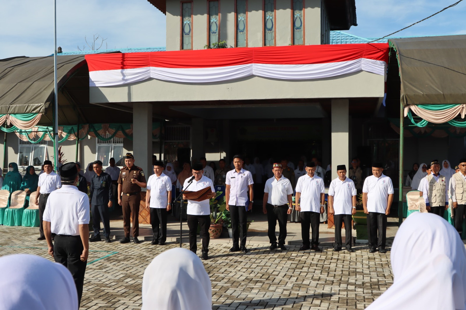 Penajam – Penjabat (Pj) Bupati Penajam Paser Utara (PPU) memimpin apel peringatan Hari Amal Bakti (HAB) ke-78 Kementerian Agama RI di halaman Kantor Kementerian Agama (Kemenag) PPU, Rabu (03/01/2024). Kegiatan yang mengangkat tema “Indonesia Hebat Bersama Umat” ini dirangkai dengan pemberian penghargaan Satyalancana dari Presiden Republik Indonesia, serta peninjauan lokasi rencana pembangunan Pusat Layanan Haji dan Umrah Terpadu (PLHUT).
