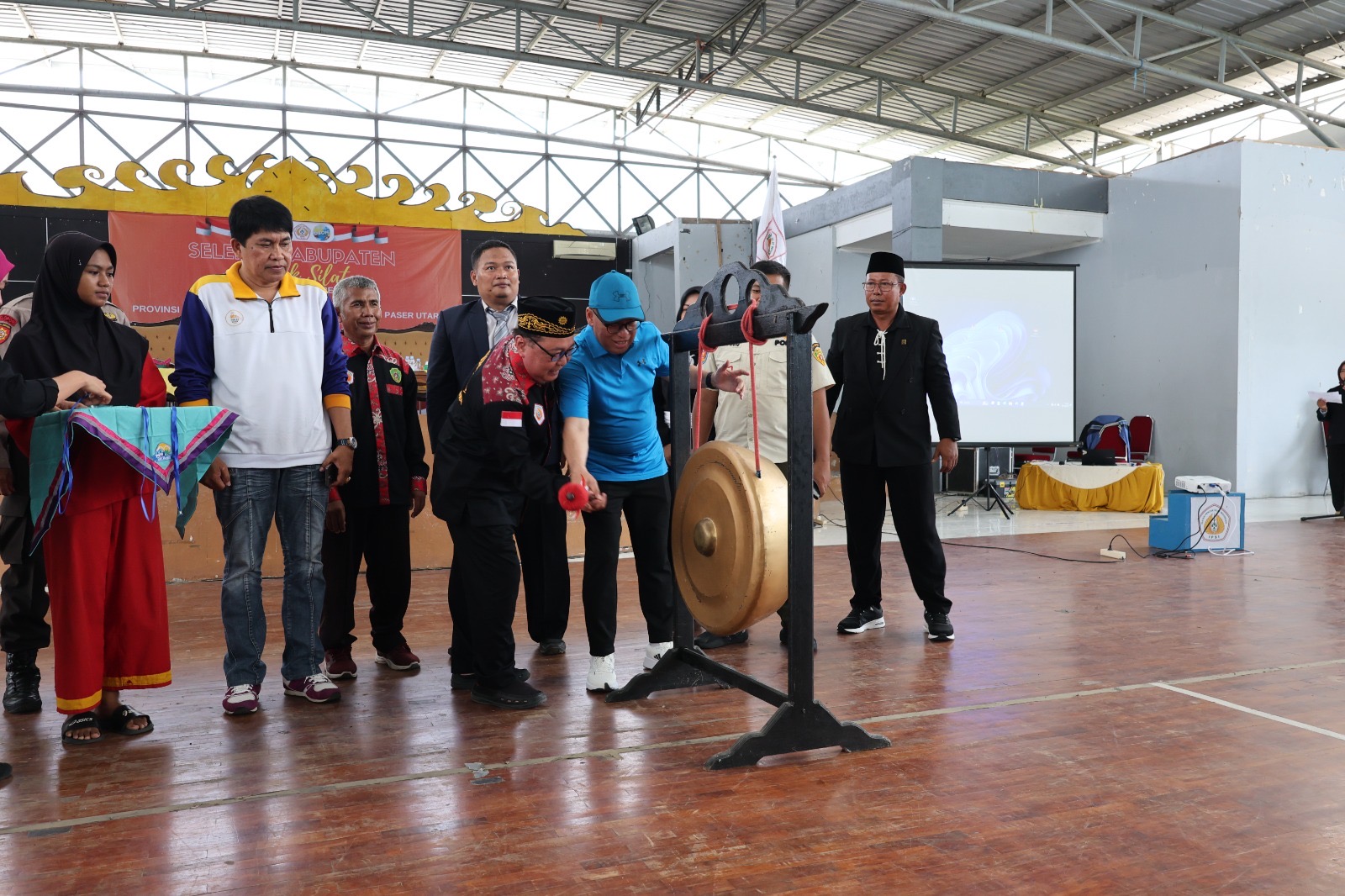 PENAJAM – Dengan dilakukannya pemukulan gong, Penjabat (Pj) Bupati Penajam Paser Utara (PPU), Makmur Marbun di dampingi Ketua Ikatan Pecak Silat Indonesia (IPSI) Kabupaten PPU, Marjani secara resmi membuka kejuaraan pecak silat kelompok umur tingkat Kabupaten PPU tahun 2023.