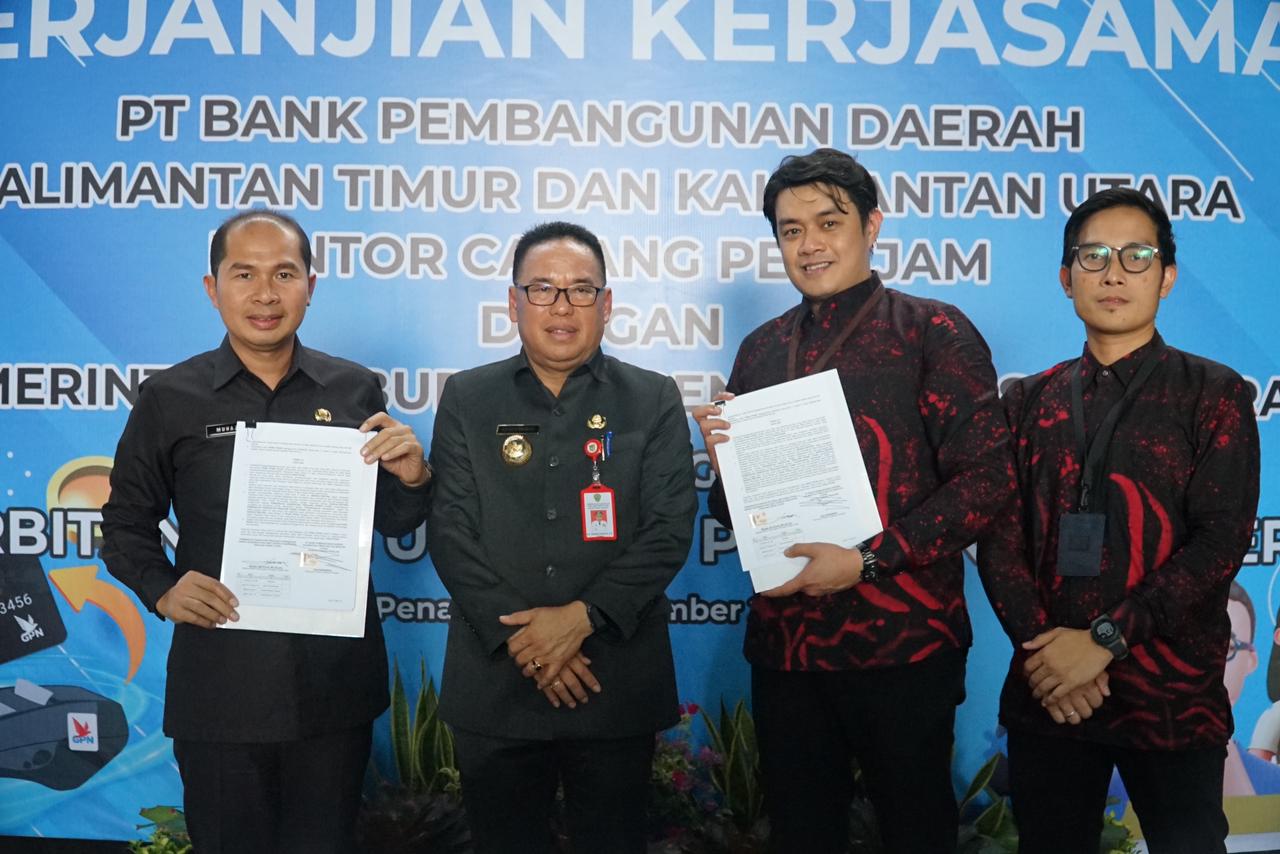 PENAJAM – Pemerintah Kabupaten (Pemkab) Penajam Paser Utara (PPU) resmi jalin kerjasama Kartu Kredit Pemerintah Daerah (KKPD) dengan PT. Bank Pembangunan Daerah (BPD) Kalimantan Timur dan Kalimantan Utara (Bankaltimtara). Penandatangan perjanjian tersebut dilakukan oleh Penjabat (Pj) Bupati PPU Makmur Marbun dan Pimpinan Cabang Bankaltimtara Penajam Arie Herlambang di Kantor Bankaltimtara Penajam, Kamis (30/11/2023).