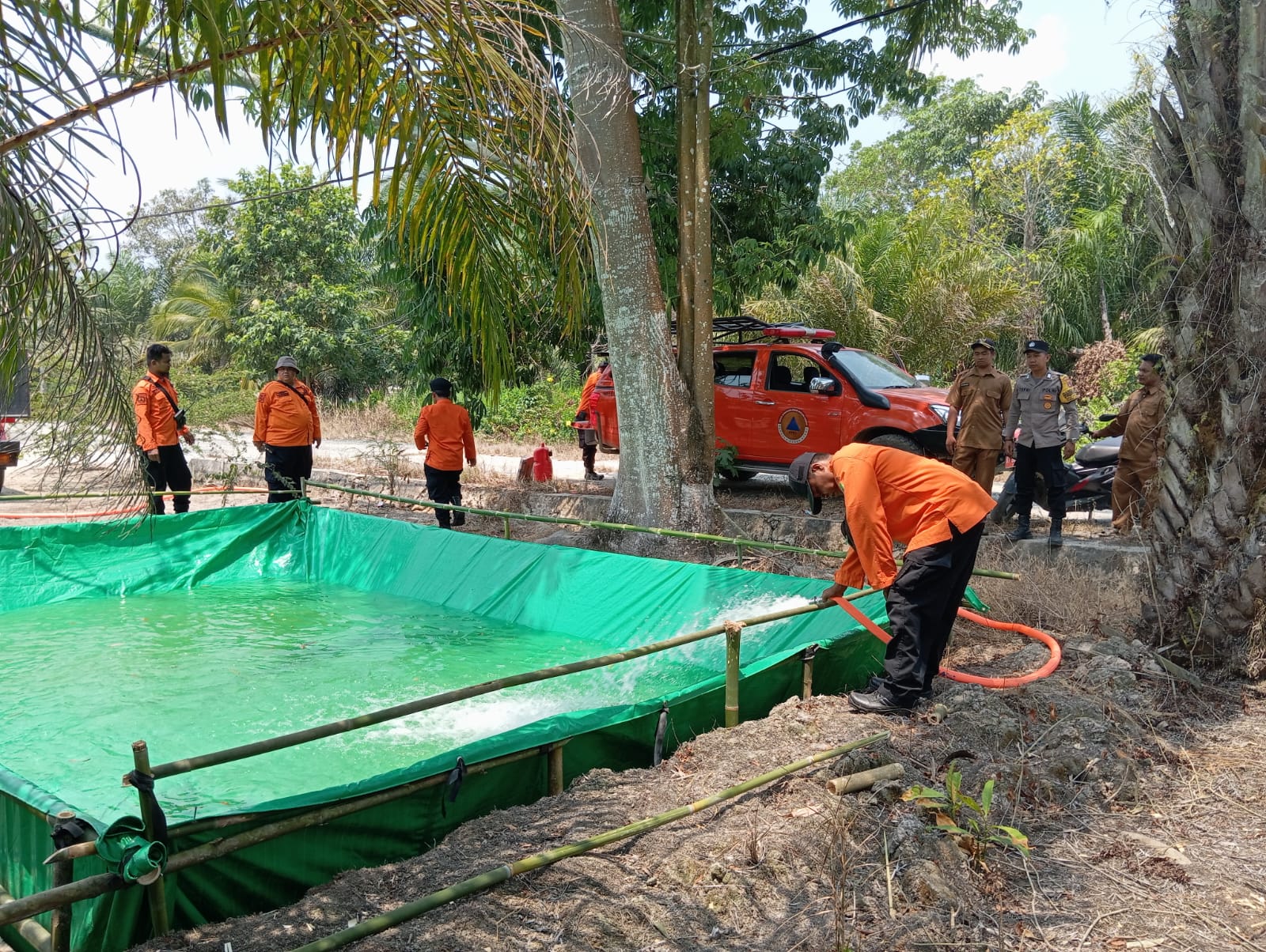 “Jadi setiap desa sudah membuatkan bak-bak penampungan yang dibuat dari terpal yang merupakan bantuan dari desa, desa bertanggung jawab membuatkan bak-bak penampungan yang sementara ada di Desa Sumber Sari. Di hari pertama kami sanggup mendistribusikan untuk 6 bak penampungan di 6 RT dan itu 1000 liter untuk masing-masing bak penampungan. Intinya kami akan lakukan distribusi sampai dengan ke 19 RT tersebut, tentu kalau ternyata di 6 RT pertama sudah mulai habis, kami akan isi ulang, jadi nantinya setiap hari kami akan melakukan pendistribusian air bersih,”jelasnya.