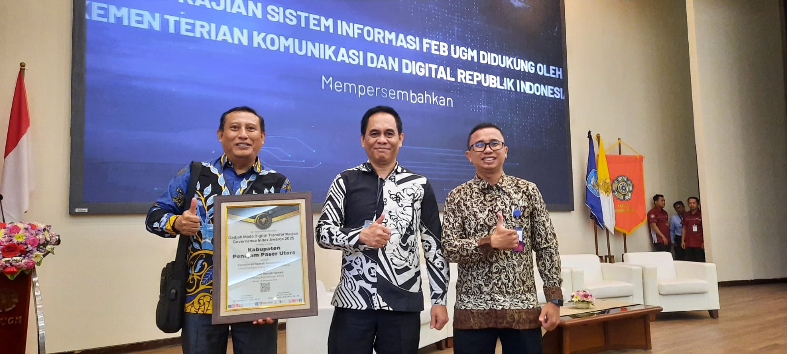 Yogyakarta – Pemerintah Kabupaten (Pemkab) Penajam Paser Utara (PPU) menerima penghargaan pada Gadjah Mada Digital Transformation Governance Index (GM-DTGI) Awards 2025 sebagai Pemerintah Daerah Terbaik Kesepuluh pada kategori Kabupaten se-Indonesia serta Pemerintah Daerah Terbaik se-Provinsi Kalimantan Timur. Penghargaan ini diserahkan oleh Wakil Menteri (Wamen) Komunikasi dan Digital (Komdigi) Nezar Patria pada Kamis (18/9/2025) di Universitas Gadjah Mada (UGM).