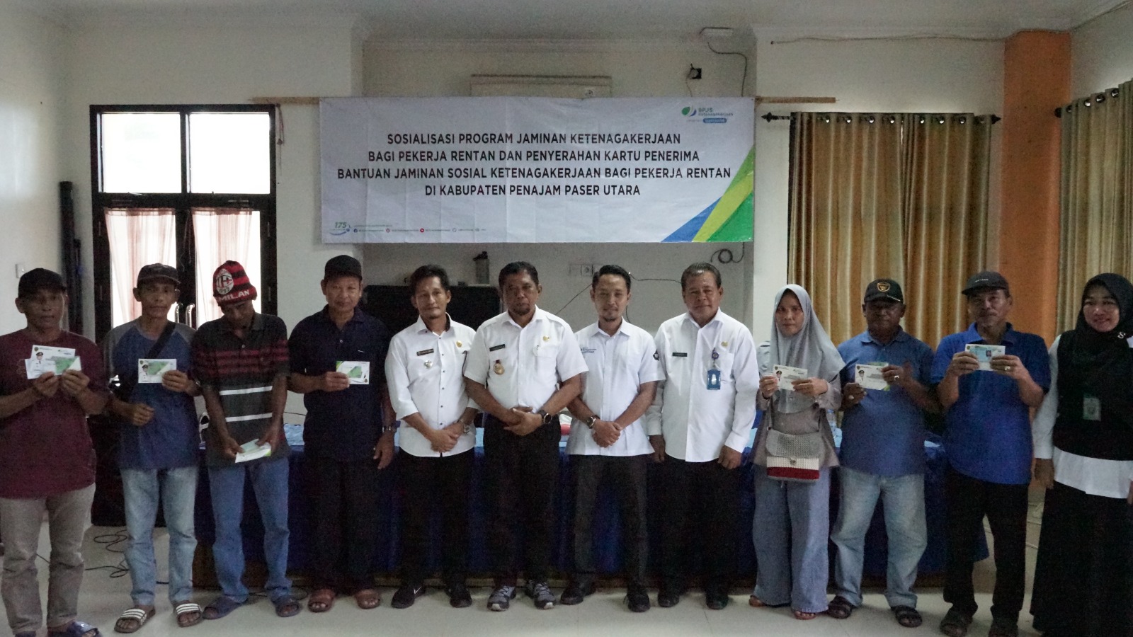 PENAJAM – Bupati Penajam Paser Utara (PPU) Hamdam kembali menyerahkan secara langsung kartu penerima bantuan jaminan sosial ketenagakerjaan bagi pekerja rentan yang ada diwilayah Kecamatan Waru, Kabupaten PPU. Penyerahan secara simbolis ini dilaksanakan di Kantor Camat Waru pada Rabu, (24/05/2023) siang.