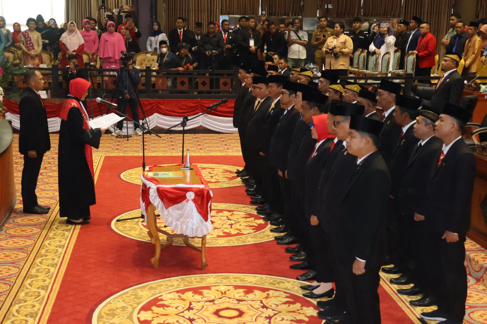 PENAJAM – Dewan Perwakilan Rakyat Daerah (DPRD) Kabupaten Penajam Paser Utara (PPU) Menggelar Rapat Paripurna Dalam Rangka Pengambilan Sumpah/Janji Anggota DPRD PPU Hasil Pemilihan Umum Tahun 2024 di Gedung Paripurna DPRD PPU, Senin (19/08/2024)