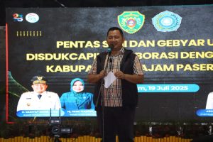PENAJAM – Suasana alun-alun di depan Kantor Bupati Penajam Paser Utara (PPU) berlangsung meriah pada Sabtu malam (19/7/2025) dengan digelarnya acara Pentas Seni dan Gebyar UMKM. Acara yang merupakan kolaborasi strategis antara Dinas Kependudukan dan Catatan Sipil (Disdukcapil) dengan Tim Penggerak Pemberdayaan dan Kesejahteraan Keluarga(TP-PKK) Kabupaten PPU ini berhasil menyedot antusiasme masyarakat.