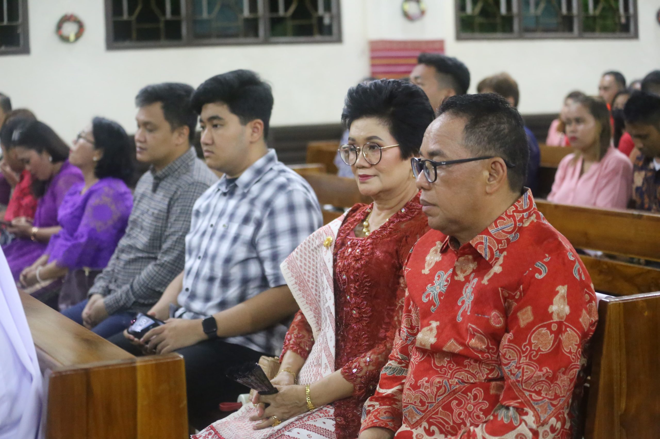 PENAJAM – Penjabat (Pj) Bupati Kabupaten Penajam Paser Utara (PPU) Makmur Marbun merayakan Natal Tahun 2023 bersama keluarga di Kabupaten PPU dengan melakukan ibadah Natal di Gereja Katolik Gunung Steleng, Minggu malam (24/12/23).