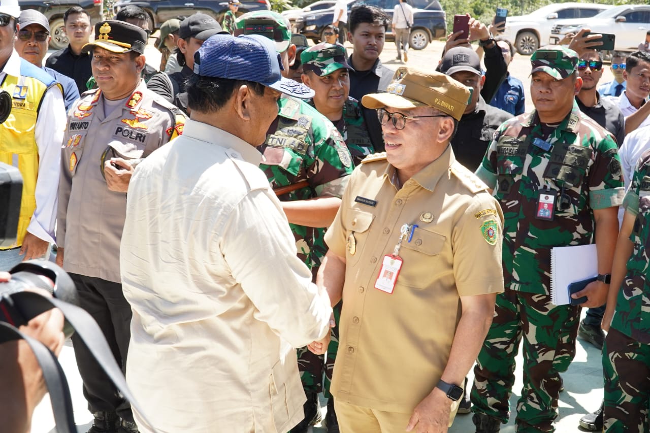 PENAJAM – Penjabat (Pj) Bupati Penajam Paser Utara (PPU) Makmur Marbun mendampingi langsung Menteri Pertahanan (Menhan) Republik Indonesia Prabowo Subianto dan jajarannya melakukan kunjungan kerja (kunker) ke lokasi pembangunan Ibu Kota Nusantara (IKN) di Kabupaten PPU, Kalimantan Timur (Kaltim) Senin, (18/3/2024) siang.
