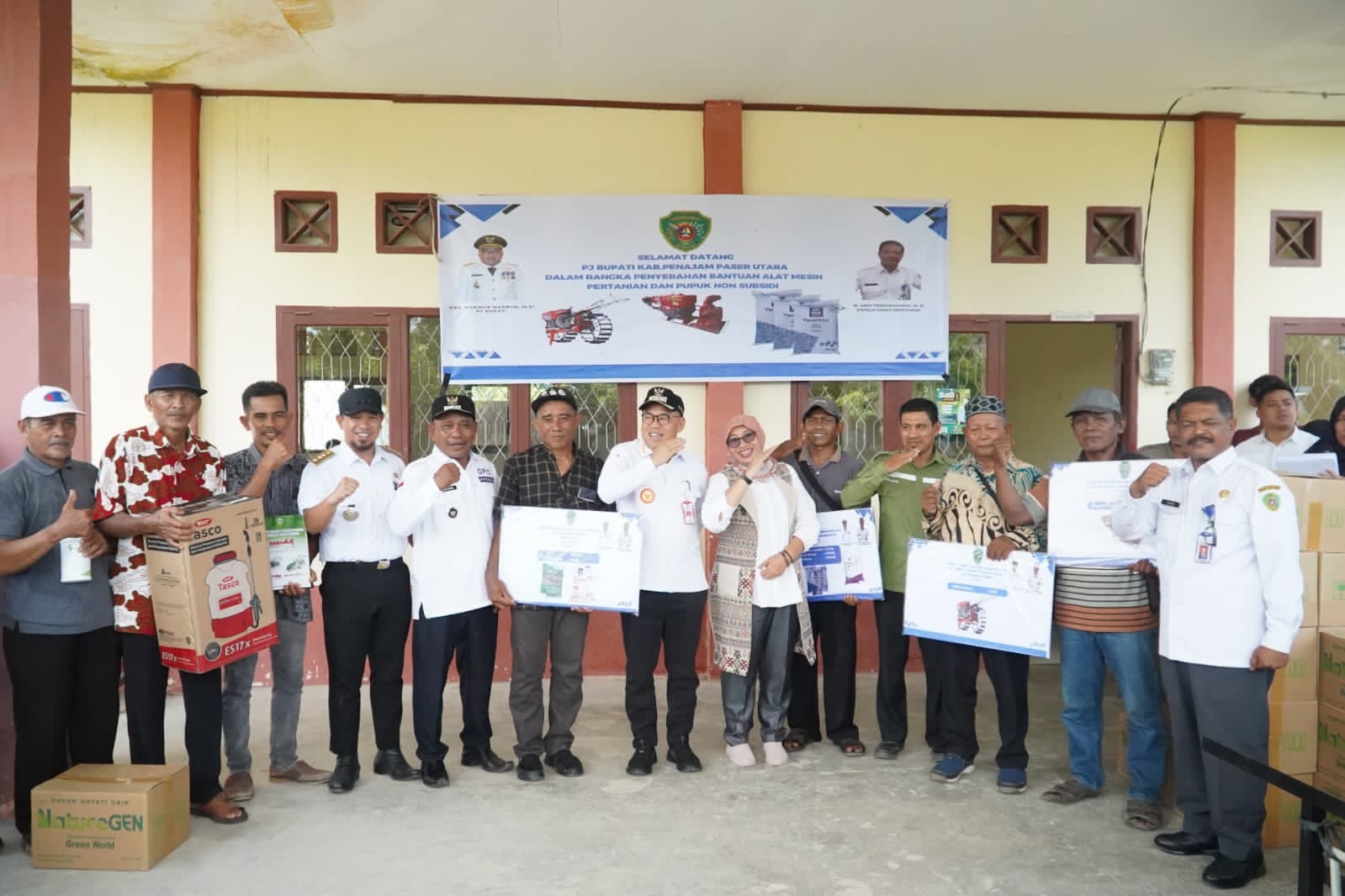 Penajam – Penjabat (PJ) Bupati Penajam Paser Utara, Drs. Makmur Marbun, M.Si menyerahkan secara langsung bantuan alat mesin pertanian kepada beberapa kelompok tani dan petani miskin ekstrim di wilayah Kecamatan Babulu dan Waru, berupa 259 unit hand sprayer, 3 unit pompa air Kohpat NS 100, 5 unit Traktor Roda Dua, 1 unit Rice Tranplanter dan juga pupuk organik cair, yang berasal dari APBN dan APBD II Kabupaten Penajam Paser Utara. Penyerahan bantuan ini dilaksanakan di sela-sela kegiatan Pembukaan Pelatihan Pembuatan Pestisida Nabati di Balai Penyuluhan Pertanian Desa Gunung Mulya, Kecamatan Babulu, Rabu (12/06/24).