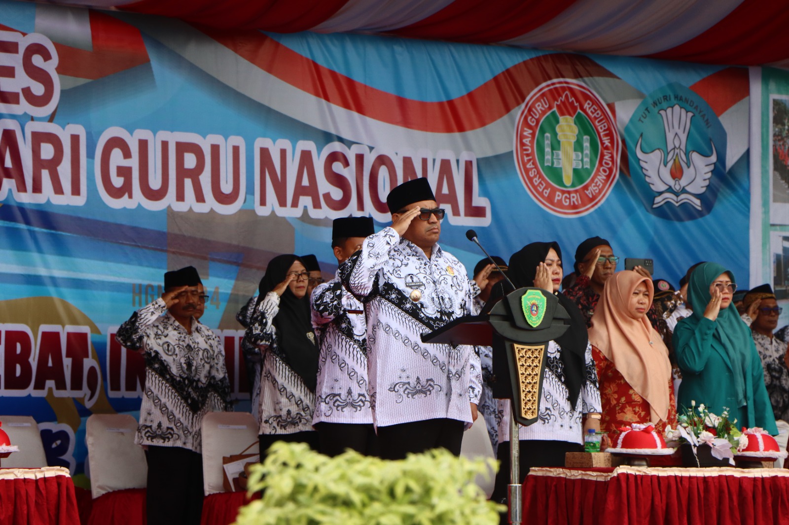 Pj. Bupati PPU saat membacakan sambutan Ketua Umum Pengurus Besar PGRI menyampaikan rasa terima kasih PGRI kepada Pemerintah RI yang telah menghargai perjuangan para pendidik, guru dan dosen, pendidik nonformal dan tenaga kependidikan dengan menetapkan hari lahir PGRI tanggal 25 November sebagai Hari Guru Nasional.