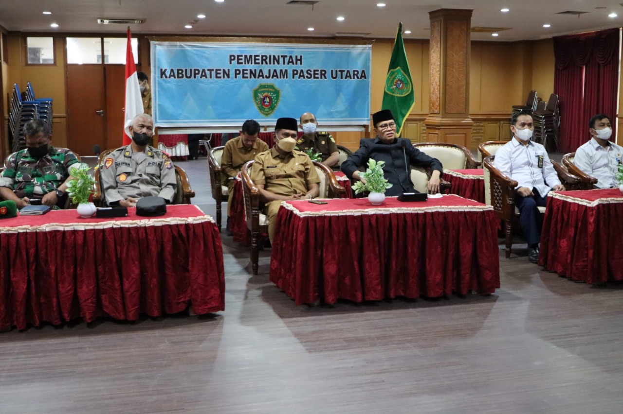 PENAJAM – Pelaksana Tugas (Plt) Bupati Penajam Paser Utara (PPU), Hamdam beserta Penjabat (Pj) Sekretaris Daerah (Sekda) PPU, Tohar dan jajaran Forum Koordinasi Pimpinan Daerah (Forkopimda) Kabupaten PPU menghadiri kegiatan Peringatan Ke – XXVI Hari Otonomi Daerah Tahun 2022 yang dilaksanakan secara virtual di aula lantai I Kantor Bupati PPU, Senin(25/4/2022).