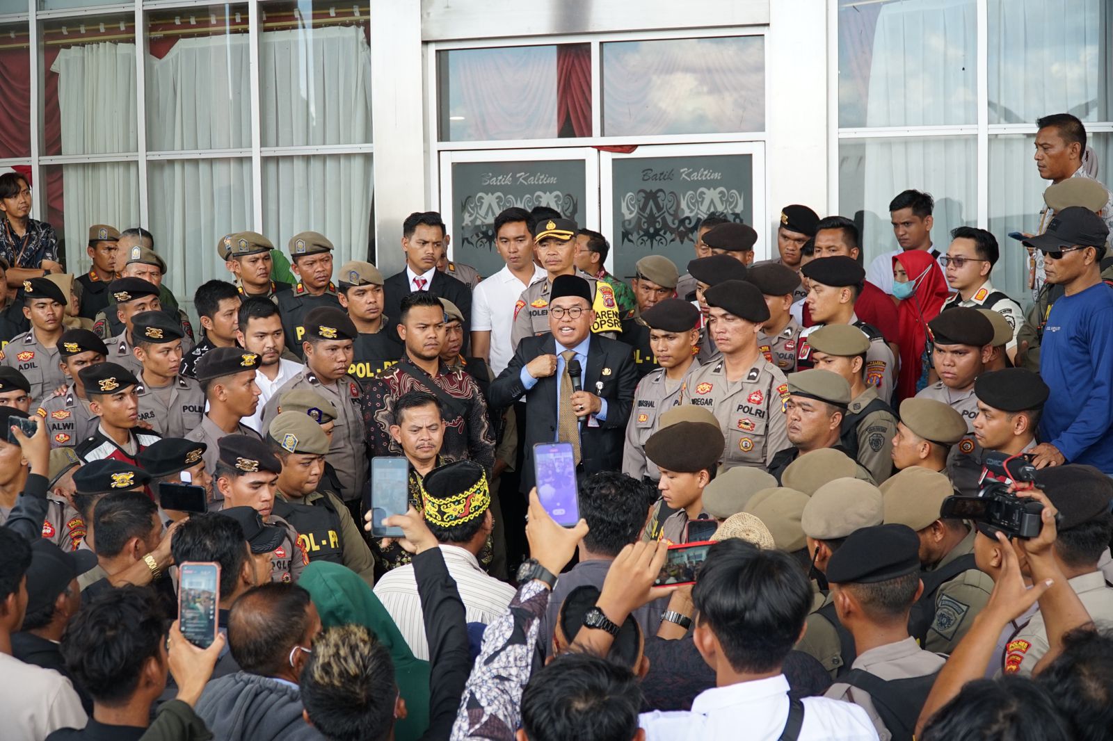 PENAJAM – Penjabat (Pj) Bupati Penajam Paser Utara (PPU), Makmur Marbun memberi penjelasan langsung kepada puluhan masyarakat yang tengah menyampaikan aspirasinya di halaman depan Kantor Bupati PPU, Kamis (11/1/2024) siang.