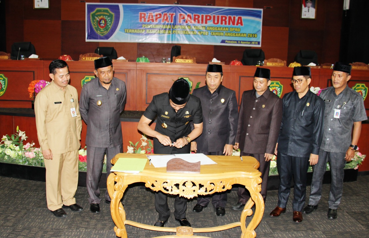 PENAJAM, Bupati Penajam Paser Utara (PPU) Abdul Gafur Mas’ud (AGM) ikuti Sidang Paripurna DPRD Kabupaten PPU dalam rangka penyampaian laporan Badan Anggaran DPRD Kabupaten PPU terhadap Rancangan Peraturan Daerah (Raperda) tentang perubahan Anggaran Pendapatan dan Belanja Daerah (APBD) Tahun Anggaran 2019, Senin, (5/8).
