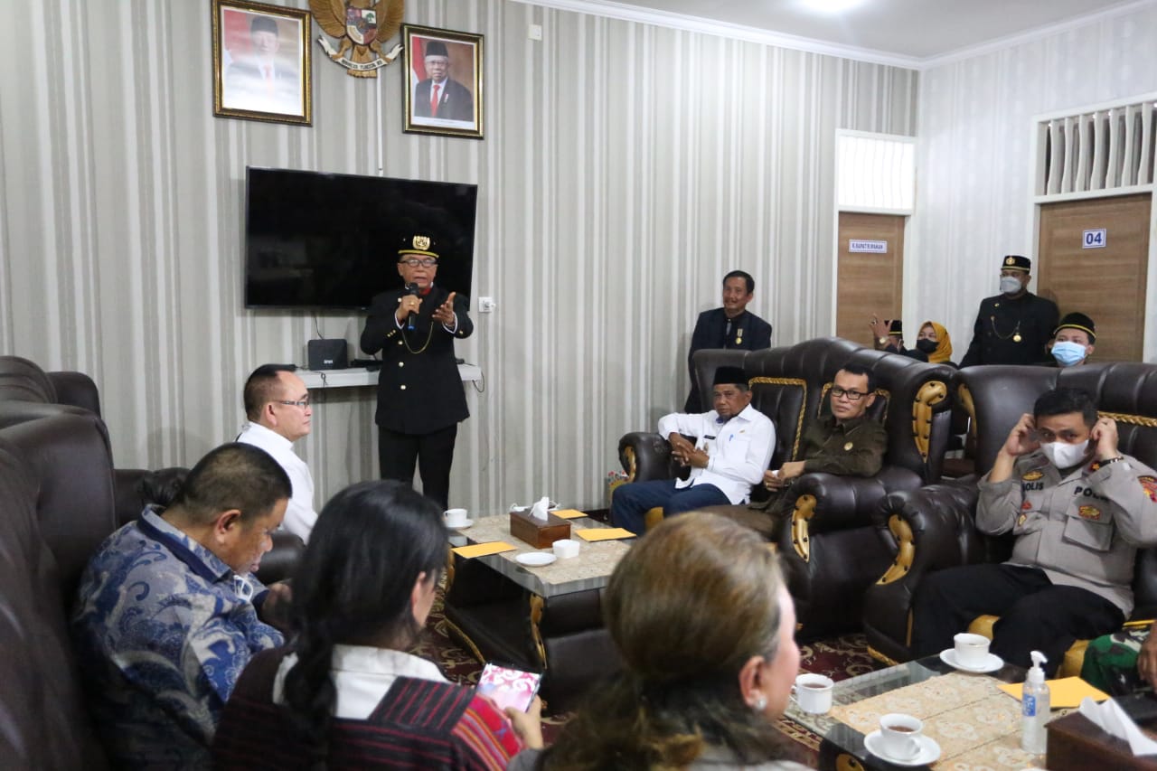 Sepaku- Plt. Bupati Penajam Paser Utara Hamdam didampingi Ketua DPRD PPU John Kenedy terima kunjungan kerja anggota Dewan Pertimbangan Presiden (WATIMPRES) Sidarto Danusubroto di Guest House Trunen Kecamatan Sepaku,Rabu (26/1).