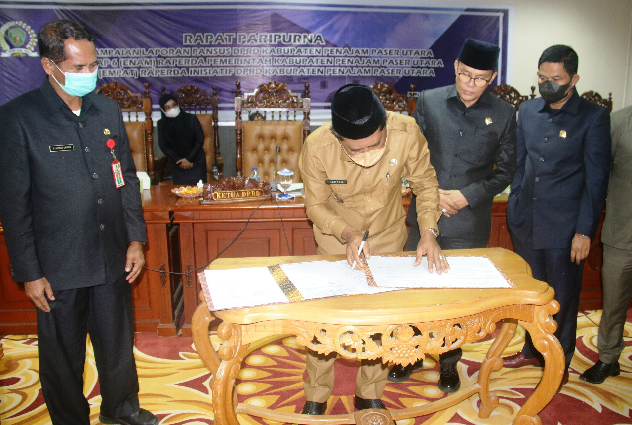 PENAJAM,- Sepuluh Rancangan Peraturan Daerah (Raperda) Kabupaten Penajam Paser Utara (PPU) disahkan menjadi Peraturan Daerah (Perda) pada Sidang Paripurna DPRD Kabupaten PPU yang digelar, Senin, (21/3/2022) siang.
