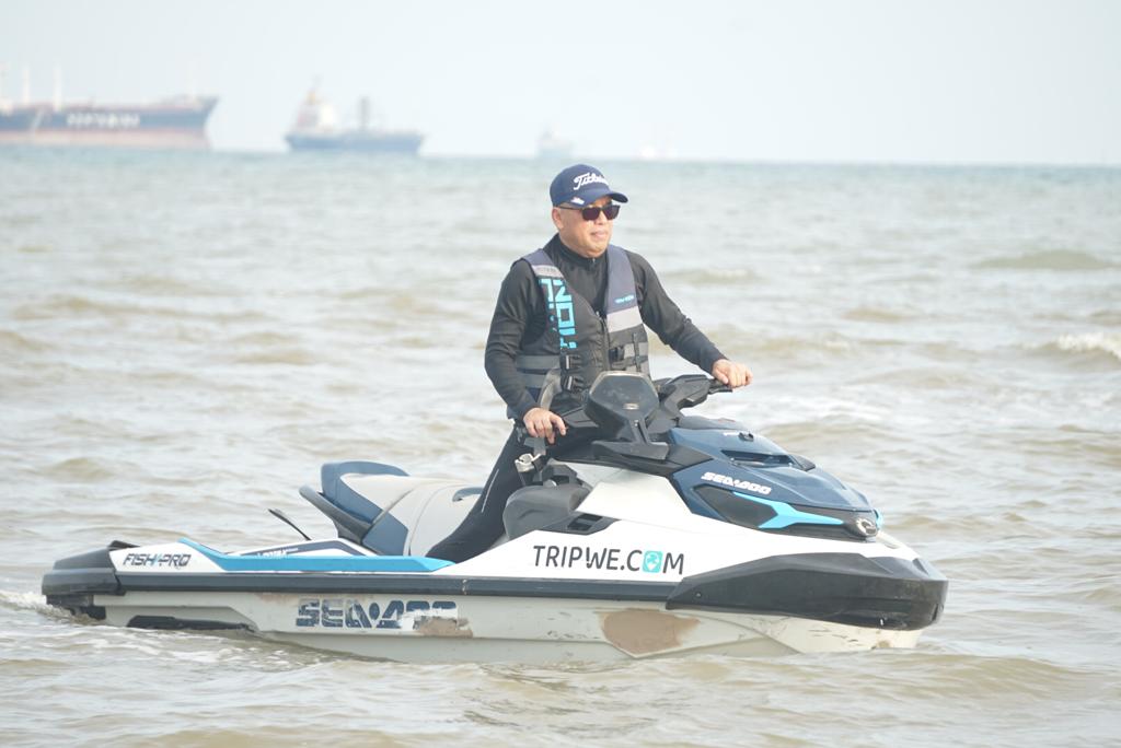 Sebagai Kepala Daerah Kabupaten PPU, Marbun mengajak Pj Gubernur Kaltim untuk berkeliling melihat indahnya Pantai Istana Amal dengan menggunakan jetsky bersama unsur Forum Koordinasi Pimpinan Daerah (Forkopimda).