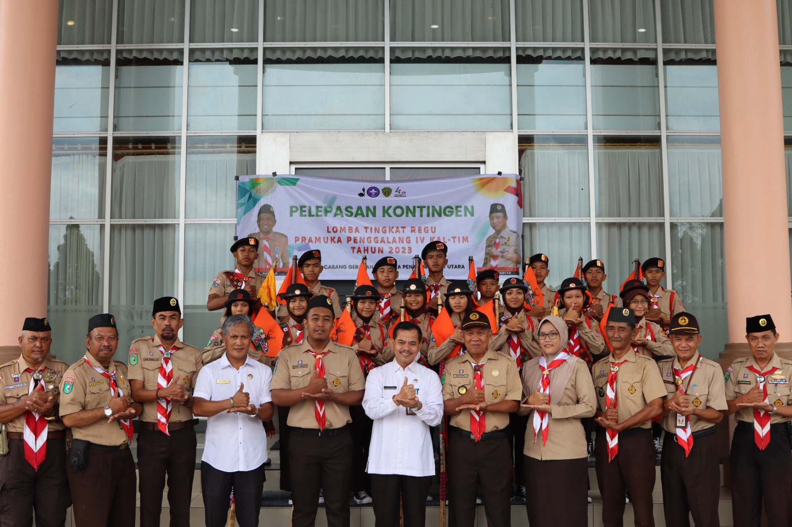 PENAJAM – Sekretaris Daerah (Sekda) Kabupaten Penajam Paser Utara (PPU), Tohar melepas secara resmi kontingen lomba tingkat regu Pramuka Penggalan IV Kalimantan Timur (Kaltim) Tahun 2023 di Kantor Bupati PPU pada Rabu (10/05/23).