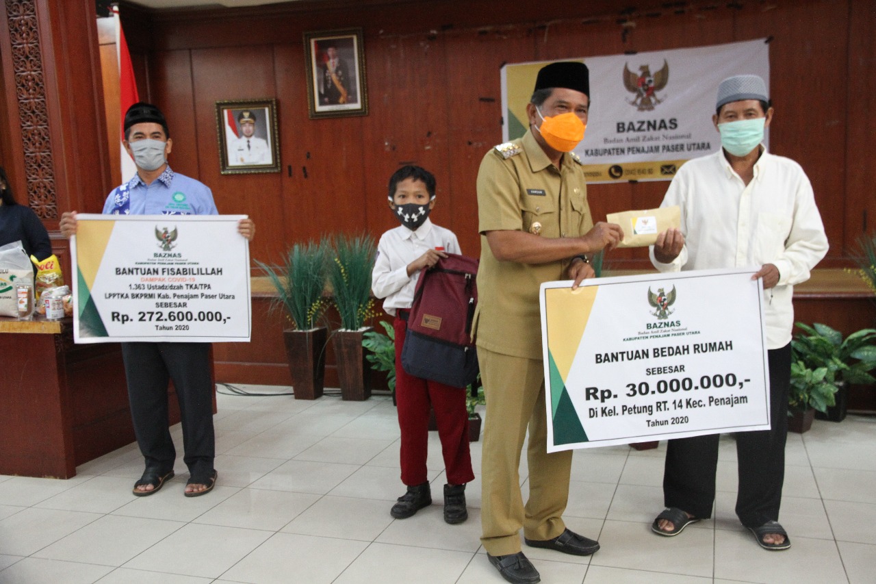 Untuk itu penyerahan dilakukan secara simbolis kepda Ketua-ketua UPZ, Kecamatan Penajam kepada H Makmur, Waru H Sadri Umar, Babulu H Arudin Sanikhudin, Sepaku H Patoni. Bantuan Ustadz Ustazah terdampak Covid19 masin masing sebesar Rp 200.000, secara simbolis diserahkan kepada perwakilan H Jamaluddin, bantuan paket tas sekolah beserta isinya, diberikan kepda Siswa SD kurang mampu sebanyak 995 siswa, secara simbolis diterima Adik Ghozalil dari SD 09 Penajam, Bantuan Bedah rumah warga Keluarahan Petung RT 16, sebesar Rp 30 Juta, bantuan Modal Usaha Kecil Kepda Warga Kelurahan Petung RT 14 atas nama Bapak Nasir sebesar Rp 20 Juta.