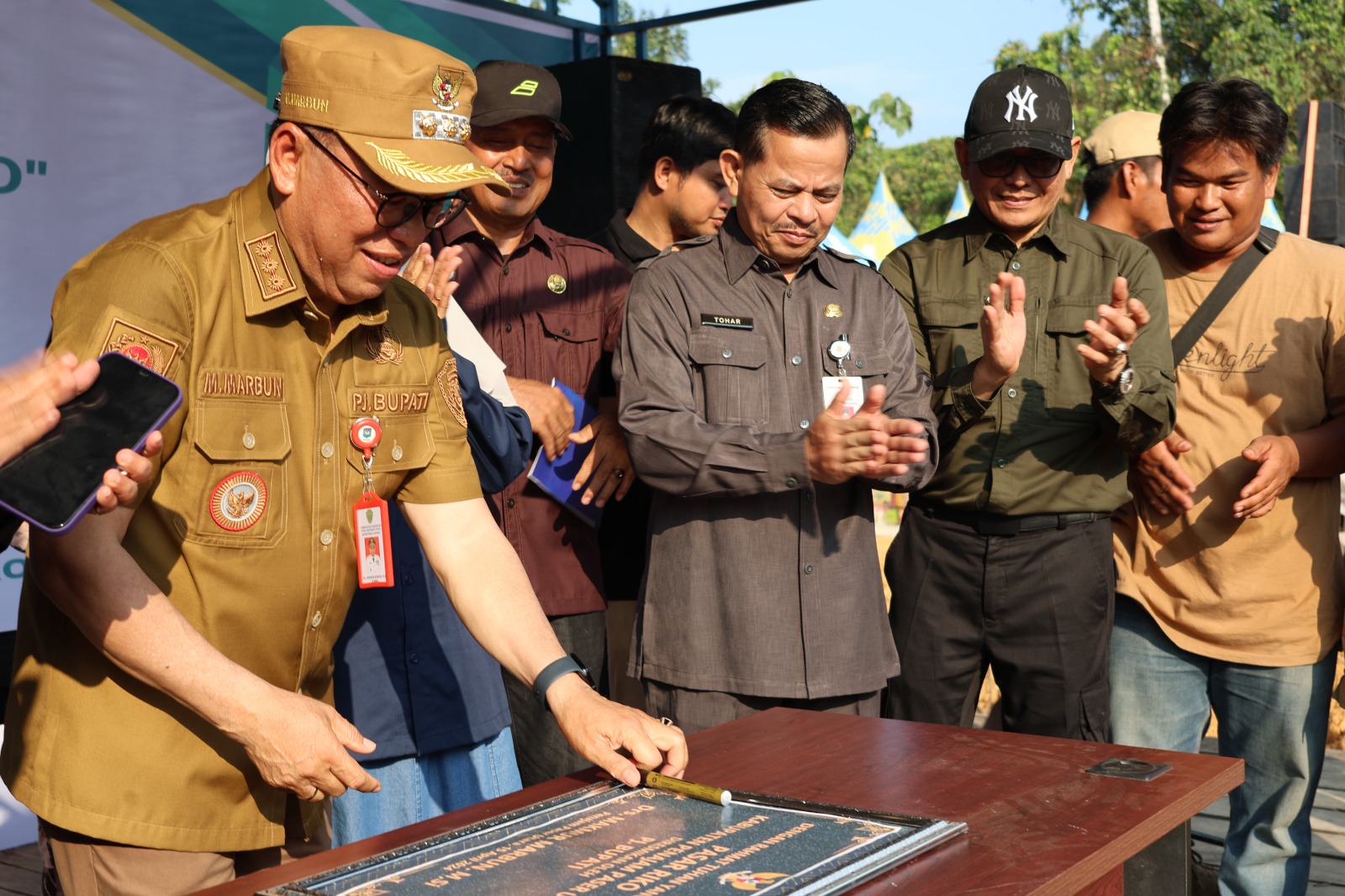 Tampak hadir dalam peresmian, Sekretaris Daerah (Sekda), pimpinan peeangkat daerah, perwakilan Forum Koordinasi Pimpinan Daerah (Forkopimda) tokoh adat, tokoh agama, dan masyarakat sekitarnya.