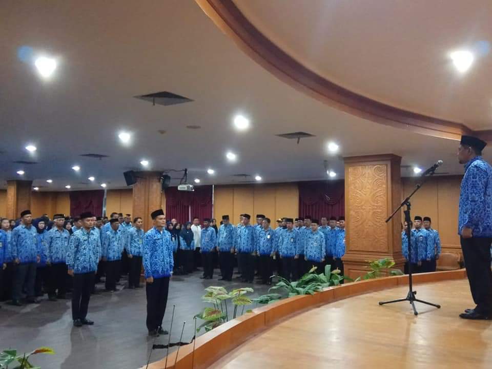 PENAJAM, Meski kondisi hujan, Pemerintah Kabupaten Penajam Paser Utara (PPU) tetap melaksanakan Upacara dalam rangka memperingati hari kelahiran pancasila, 1 Juni 2019. Upacara digelar secara sederhana di Aula Lantai I Kantor Bupati PPU, Sabtu, (1/6) kemarin.