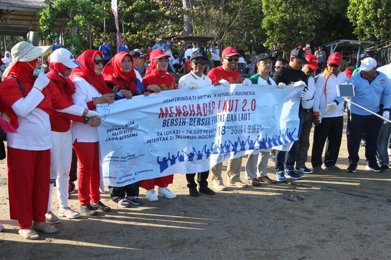 Penajam, Wakil Bupati Penajam Paser Utara (PPU) H. Hamdam memimpin kegiatan Bersih Pantai dan Laut serta aksi mengadap laut di Kelurahan Saloloang, Kecamatan Penajam, Kabupaten PPU di Hadiri Dandim 0913 Letkol Mahmud, unsur manajemen Pertamina RU V Lawe-lawe, perwakilan Kementerian Kelautan dan Perikanan RI di wakili Kepala BPSPL Pontianak Get Reda beserta rombongan, Unsur Pimpinan Dinas Perikanan dan Kelautan Provinsi Kaltim beserta staf dan sejumlah Pimpinan OPD di lingkungan Pemerintah Kabupaten PPU, Minggu (18/8)